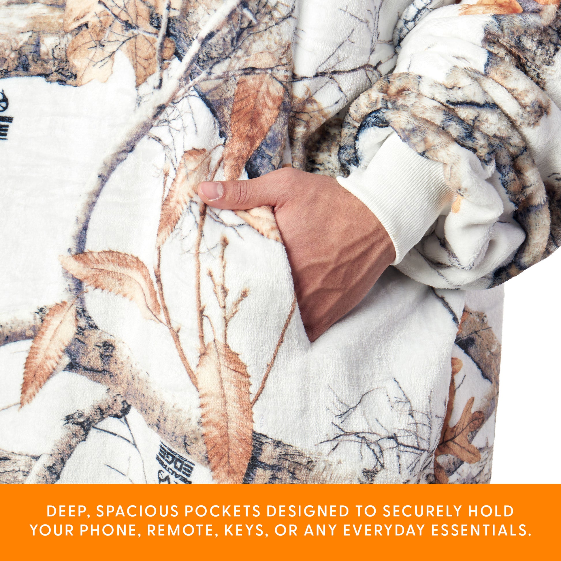 • Features an ofically licensed Realtree pattern with oversized fit and a large front pocket.