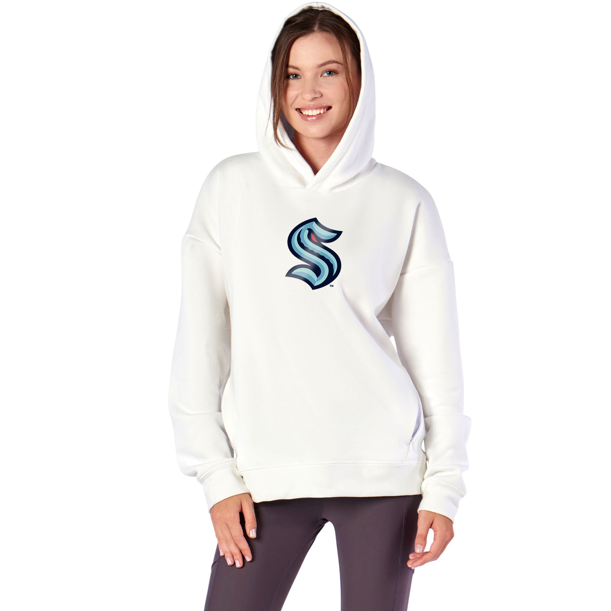 Seattle Kraken NHL Kadi Hoodie with Zipper Pockets White