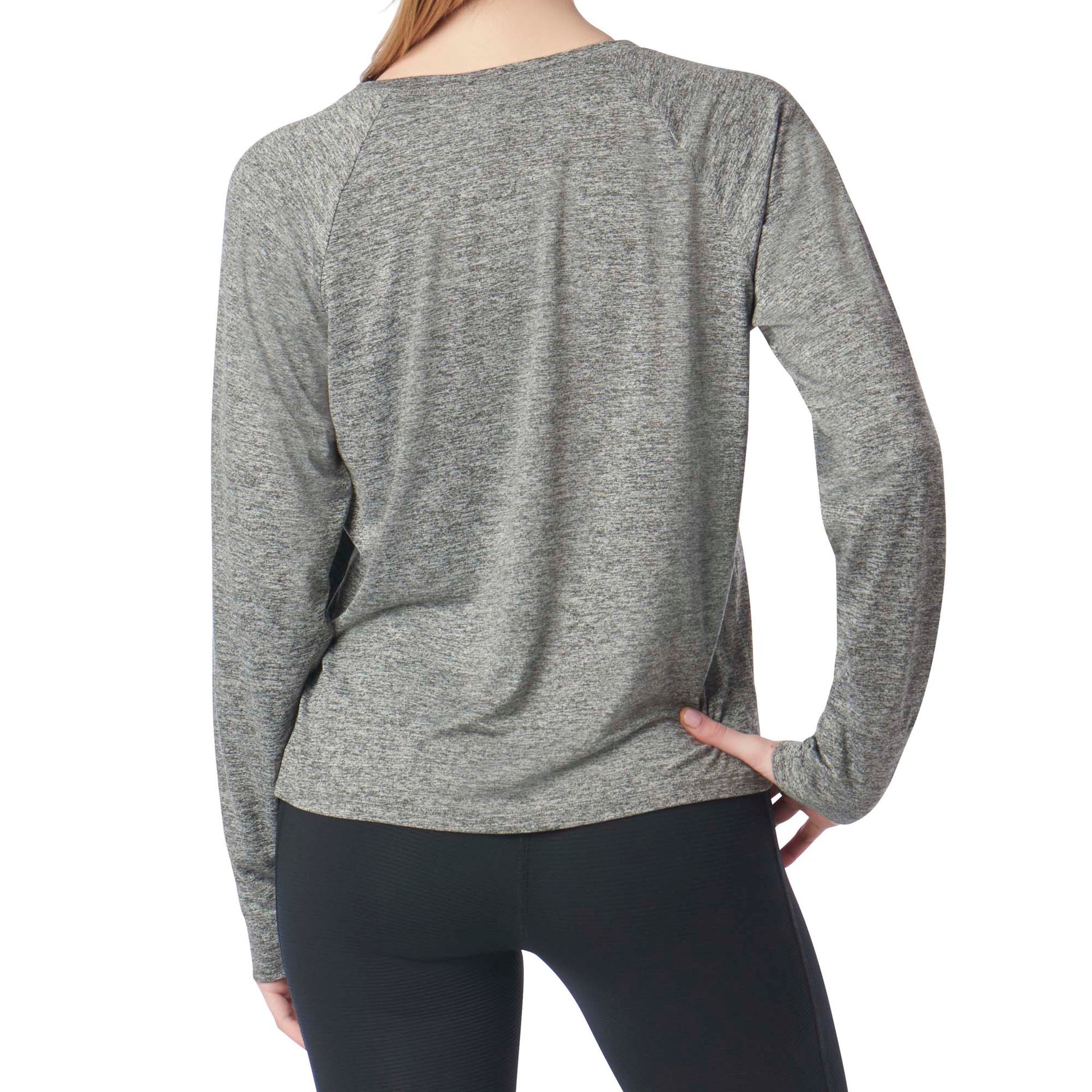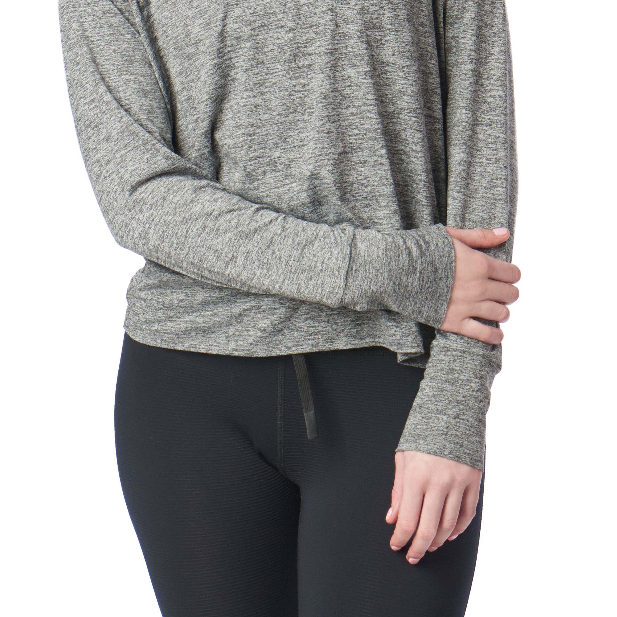 • Features a heathered pattern and athletic-inspired raglan sleeves.