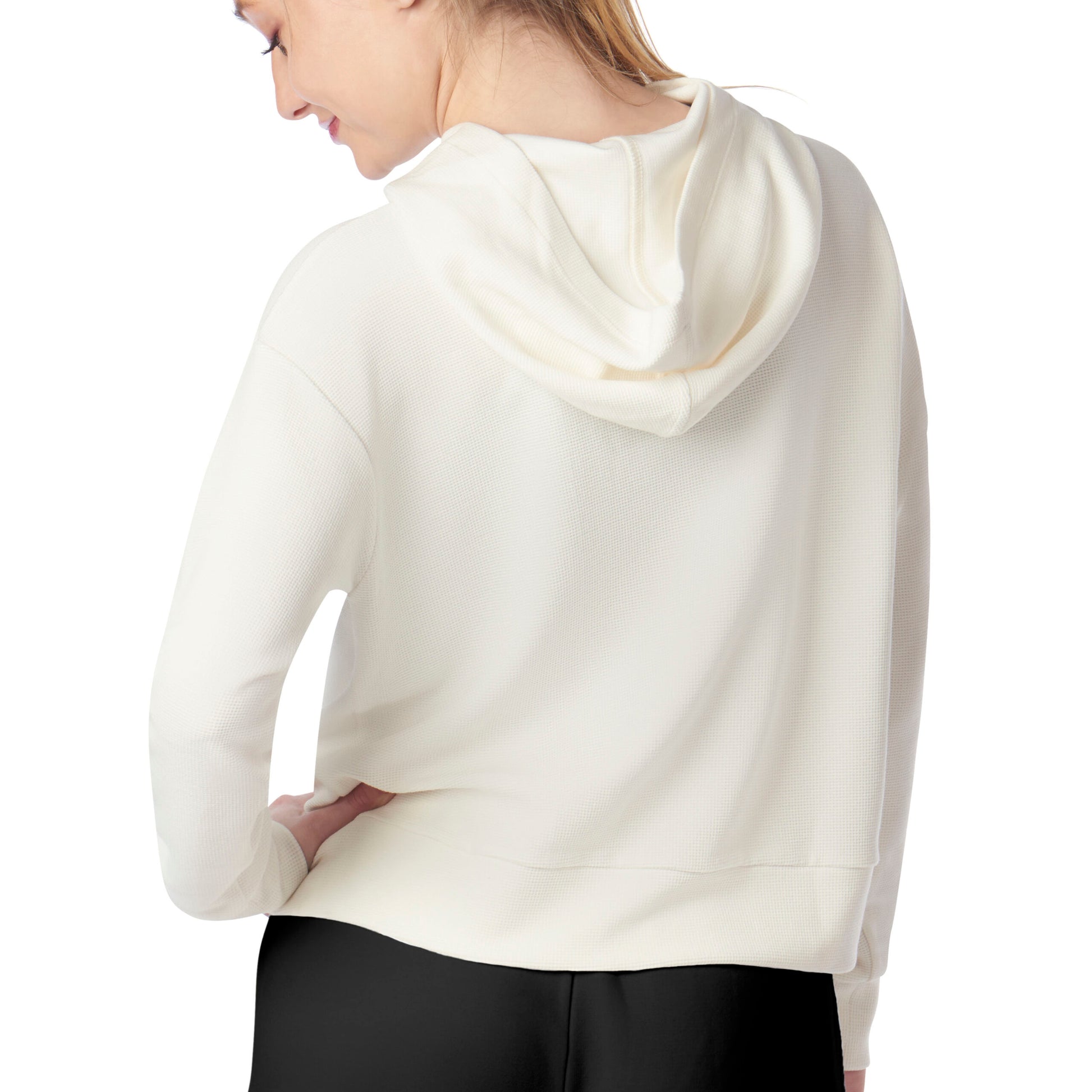 - This hoodie features a waffle-knit fabric that offers a textured feel that keeps things breathable yet warm.