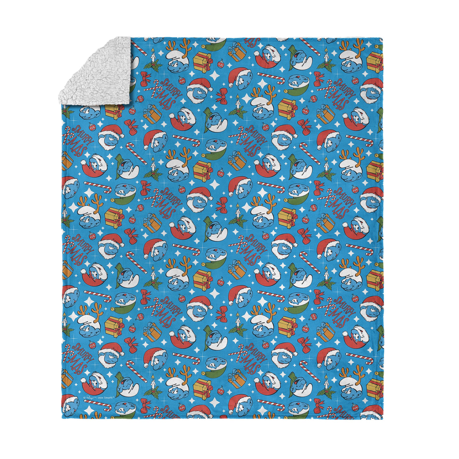Smurfs Smurfy Xmas Silk Touch Sherpa Throw Blanket 50×60 Inches