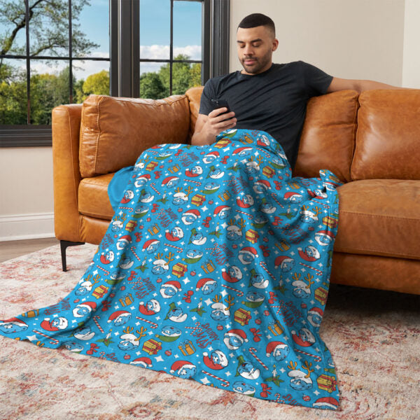 Wrap yourself in festive fun with the Smurfs “Smurfy Xmas” Silk Touch Throw Blanket. This vibrant blanket features a repeating holiday pattern filled with the iconic Smurfs, along with festive bows, gift boxes, holly, and other seasonal delights. Its playful design captures the joy and warmth of the holidays, making it a perfect addition to your seasonal décor. Made from ultra-soft Silk Touch fabric, this throw provides both comfort and style, keeping you cozy during those chilly winter days. Whether draped over the couch or spread across your bed, the delightful design and luxurious texture make it a perfect companion for relaxing at home or adding a festive touch to any room. Ideal for Smurfs fans and anyone who loves the holiday season, this throw brings a cheerful pop of color and charm to your space. Its lively pattern and soft feel are sure to spread smiles, making it a wonderful gift or personal treat for all ages.