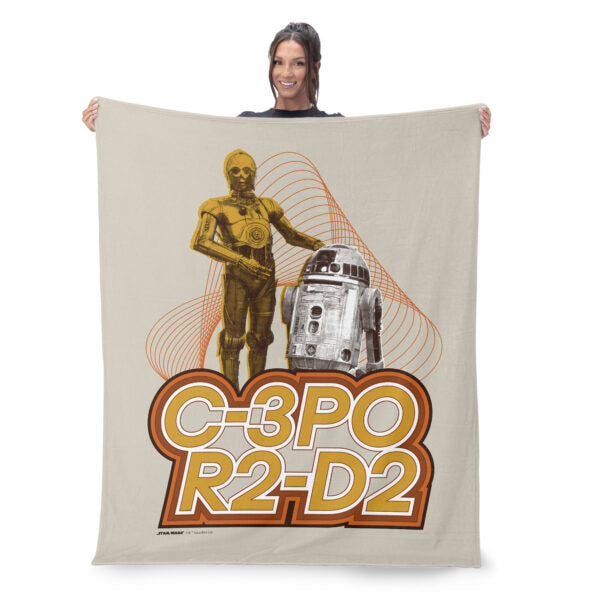 • Featuring the iconic duo of C-3PO and R2-D2 in a stylish retro design, this blanket blends vintage charm with modern flair.