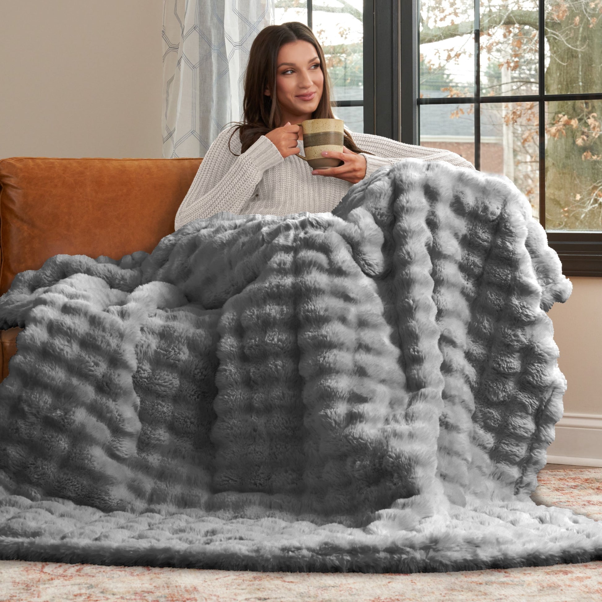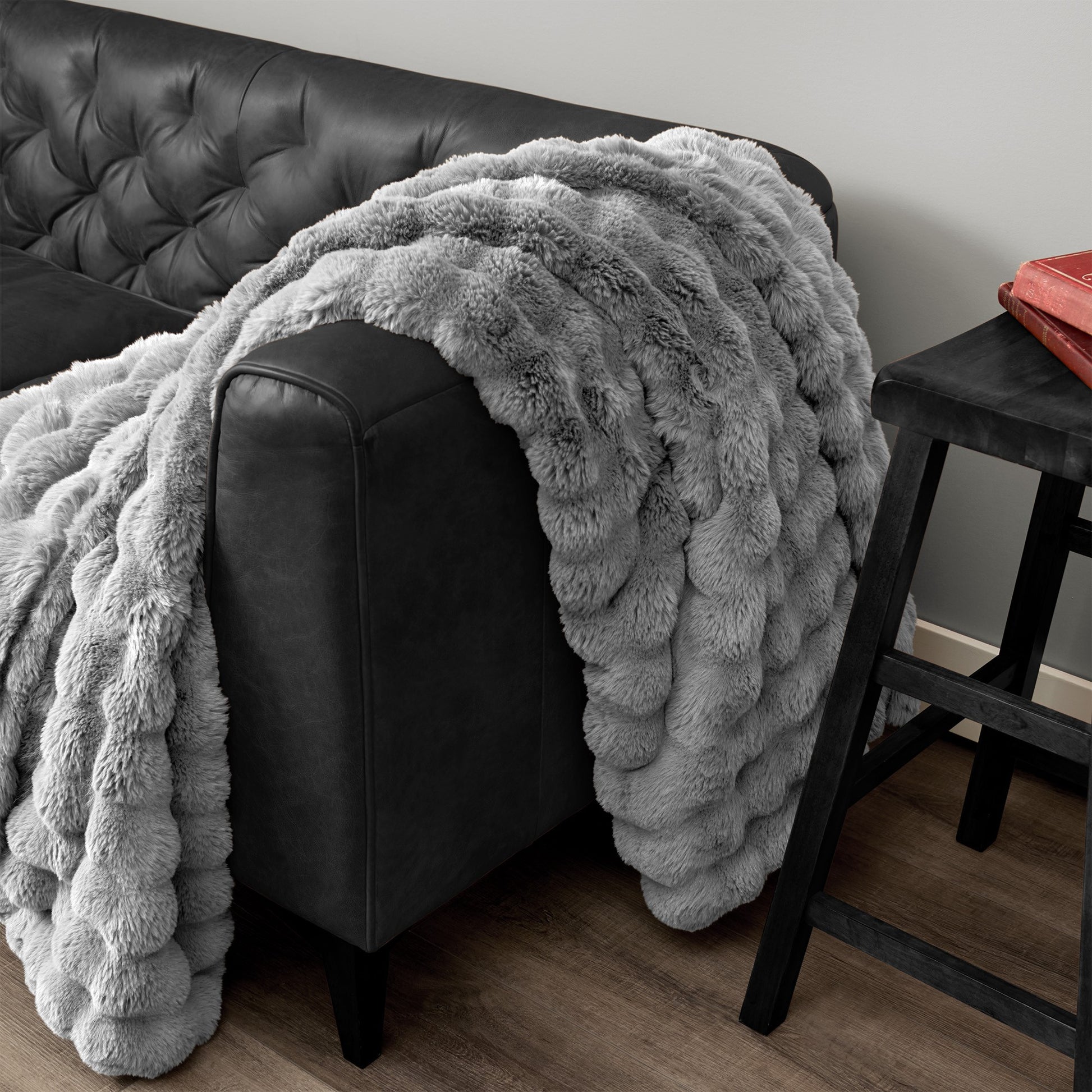 Serenade Textured Faux Fur Throw Blanket Lunar Rock 50X70 Inches