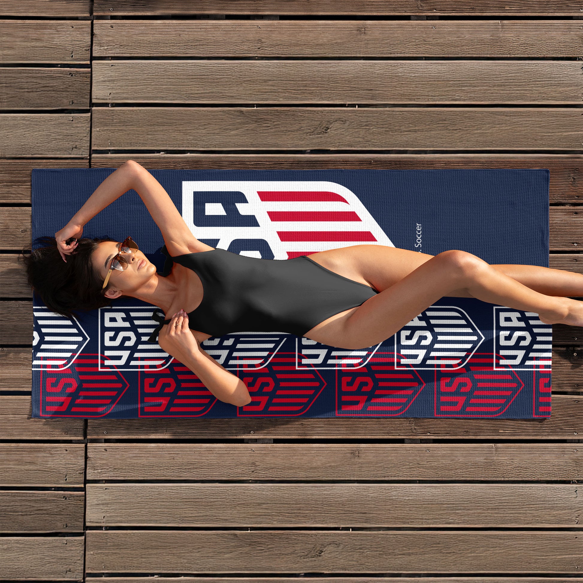 Bold, patriotic, and ready for beach days that celebrate team spirit — U.S. Soccer’s Mimic Mens Sand Free Waffle Weave Beach Towel combines function and fandom. Featuring a distinctive U.S. Soccer crest in bold red, white, and blue, it proudly displays the national pride of the game. The sand-free waffle weave fabric keeps the towel lightweight, quick-drying, and resistant to cling, making it perfect for the beach, pool, or post-game cool down. Crafted for comfort and built to last, it offers a smooth texture that stays soft even after countless washes. Officially Licensed, this towel is a standout gift for fans who live and breathe the sport. Whether you’re watching from the stands or lounging by the shore, it’s the ultimate blend of performance and pride — just like your favorite team.