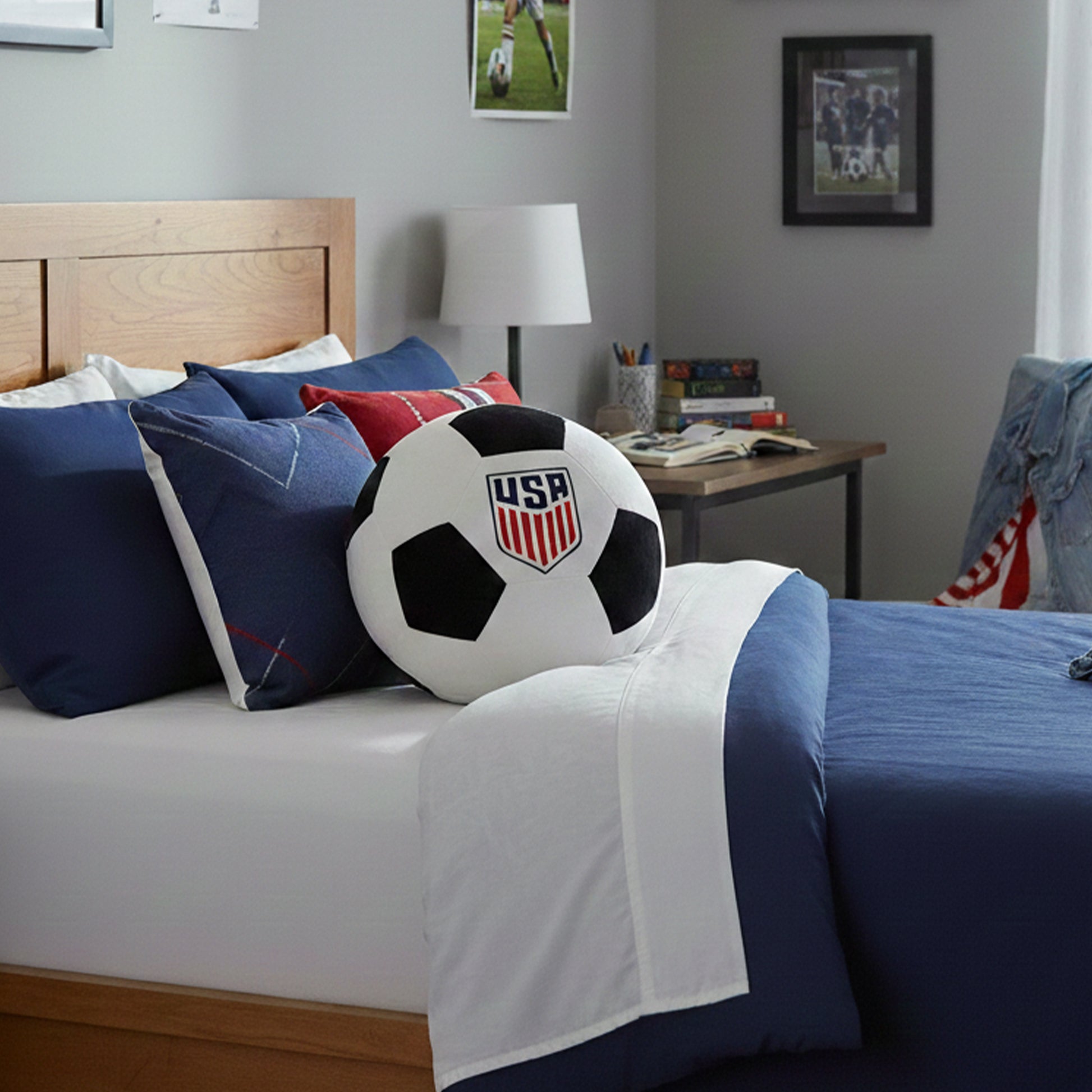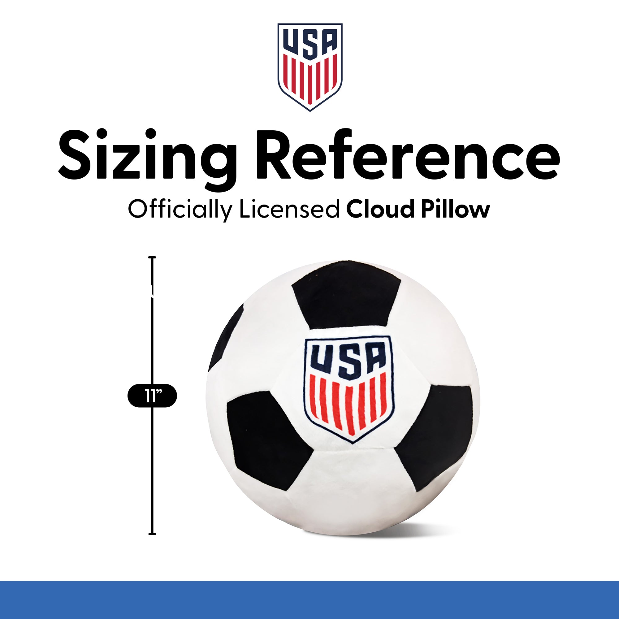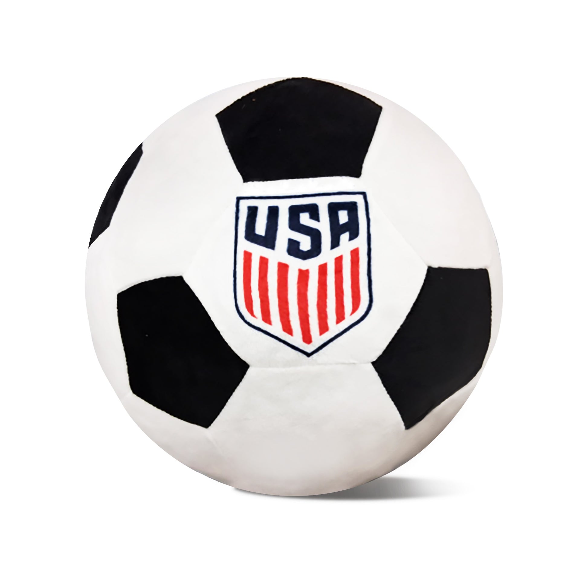 Add a soft touch of team pride to any space with the U.S. Soccer "Men's Logo" Round Cloud Pillow. Designed to resemble a classic black-and-white soccer ball, this plush pillow features the iconic USA crest complete with bold navy lettering, red striping, and four stars above the shield to celebrate championship excellence. Crafted from ultra-soft cloud fabric, this 11-inch round pillow delivers cozy comfort and is the perfect accent piece in bedrooms, basements, dorms, and playrooms. This cloud pillow combines sporty style with plush comfort making it the perfect gift for soccer lovers of any age.