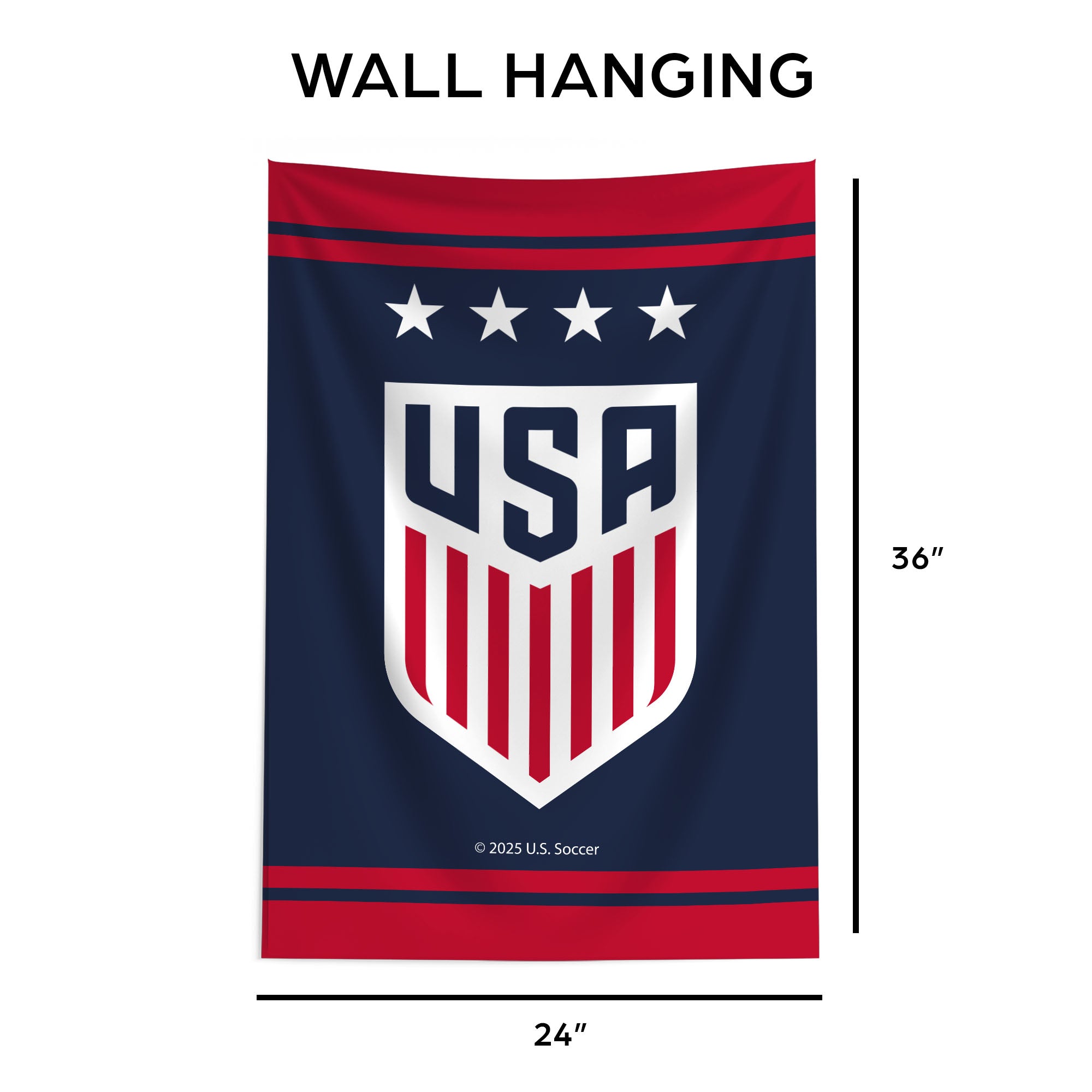 Command attention on your wall with the U.S. Soccer Mimic Womens Wall Hanging Tapestry, a bold display of national pride for every fan’s space. Showcasing the striking U.S. Soccer crest set against a classic navy and red backdrop, this tapestry adds instant energy and team spirit to any room. Crafted from lightweight, durable fabric, it’s easy to hang, resistant to wrinkles, and designed to keep its vibrant colors season after season. Perfect for bedrooms, fan caves, offices, or dorms, it transforms any wall into a celebration of U.S. Soccer pride. Officially Licensed, this high-impact wall piece makes an unforgettable gift for fans who live and breathe the game. It’s more than décor—it’s a statement of loyalty, passion, and pride in every stripe.