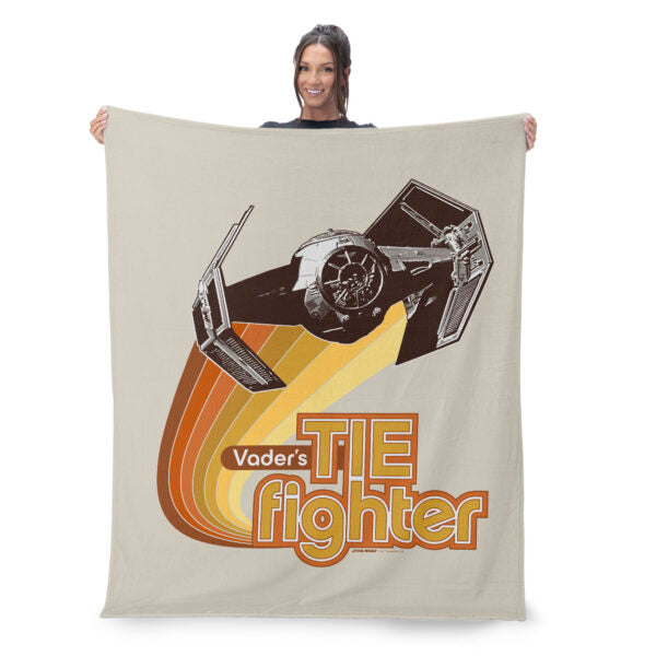 • Featuring the menacing design of Darth Vader's iconic TIE Fighter against a bold, retro-inspired backdrop, this blanket captures the essence of the Empire in an eye-catching, graphic style.