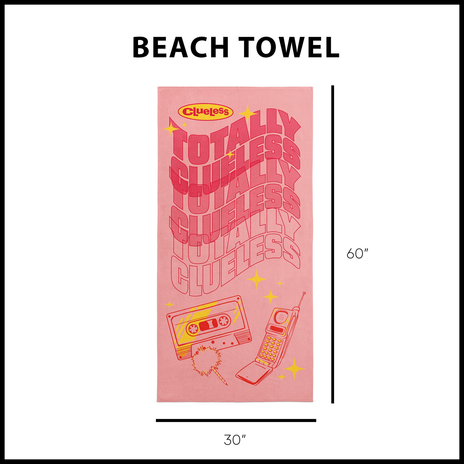 Gloriously bold and totally 90s, Paramount’s Officially Licensed Clueless Totally Clueless Microfiber Beach Towel showcases stacked neon Totally Clueless lettering, sparkling accents, and retro icons like a cassette tape, flip phone, and fluffy pen. Soft, lightweight microfiber keeps it fast-drying, sand-resistant, and easy to pack for beach days, poolside lounging, or travel. Perfect for fans who live for iconic throwback moments, it delivers cozy comfort, vibrant personality, and everyday durability. A standout gift for anyone who loves Clueless or simply wants their summer style to feel totally fabulous.