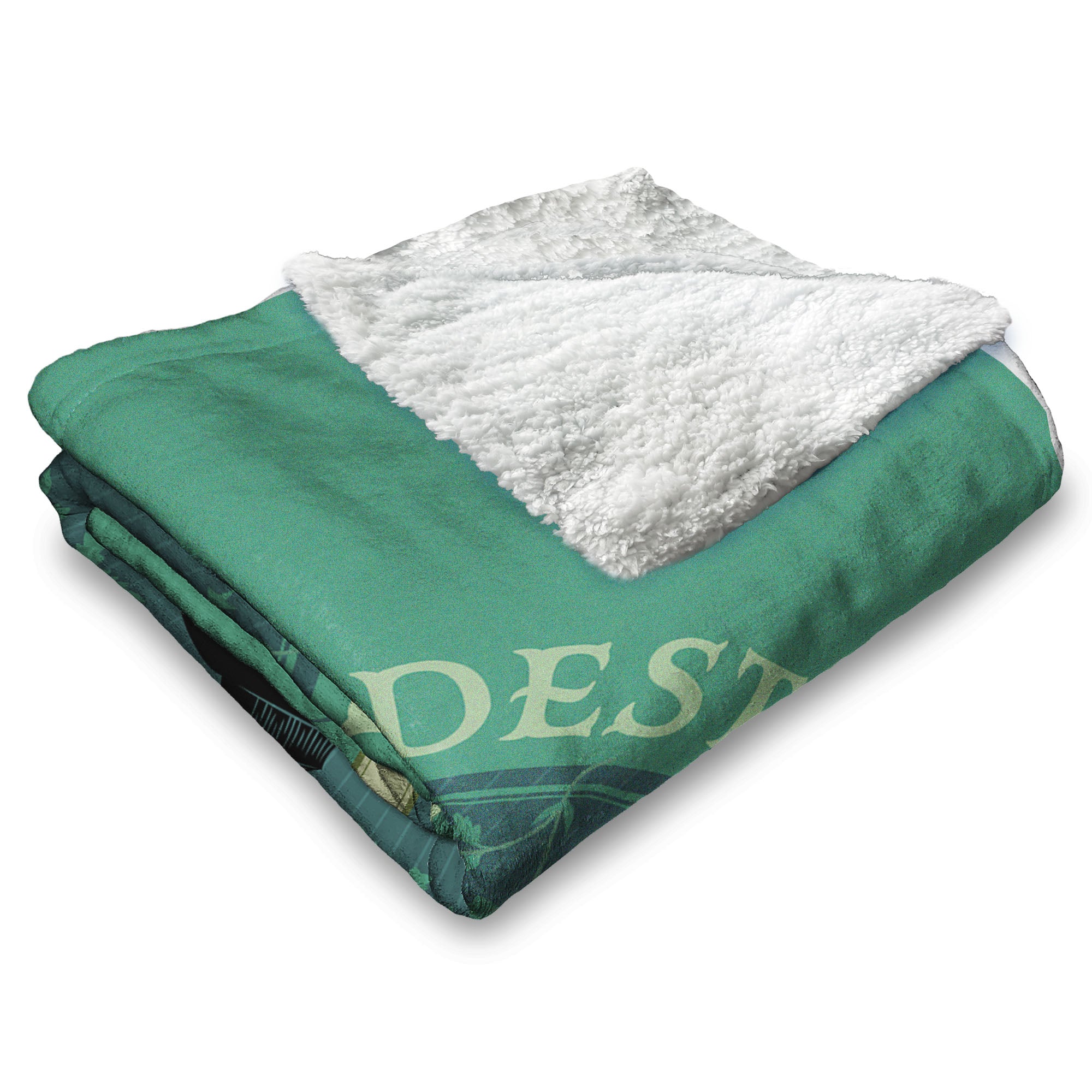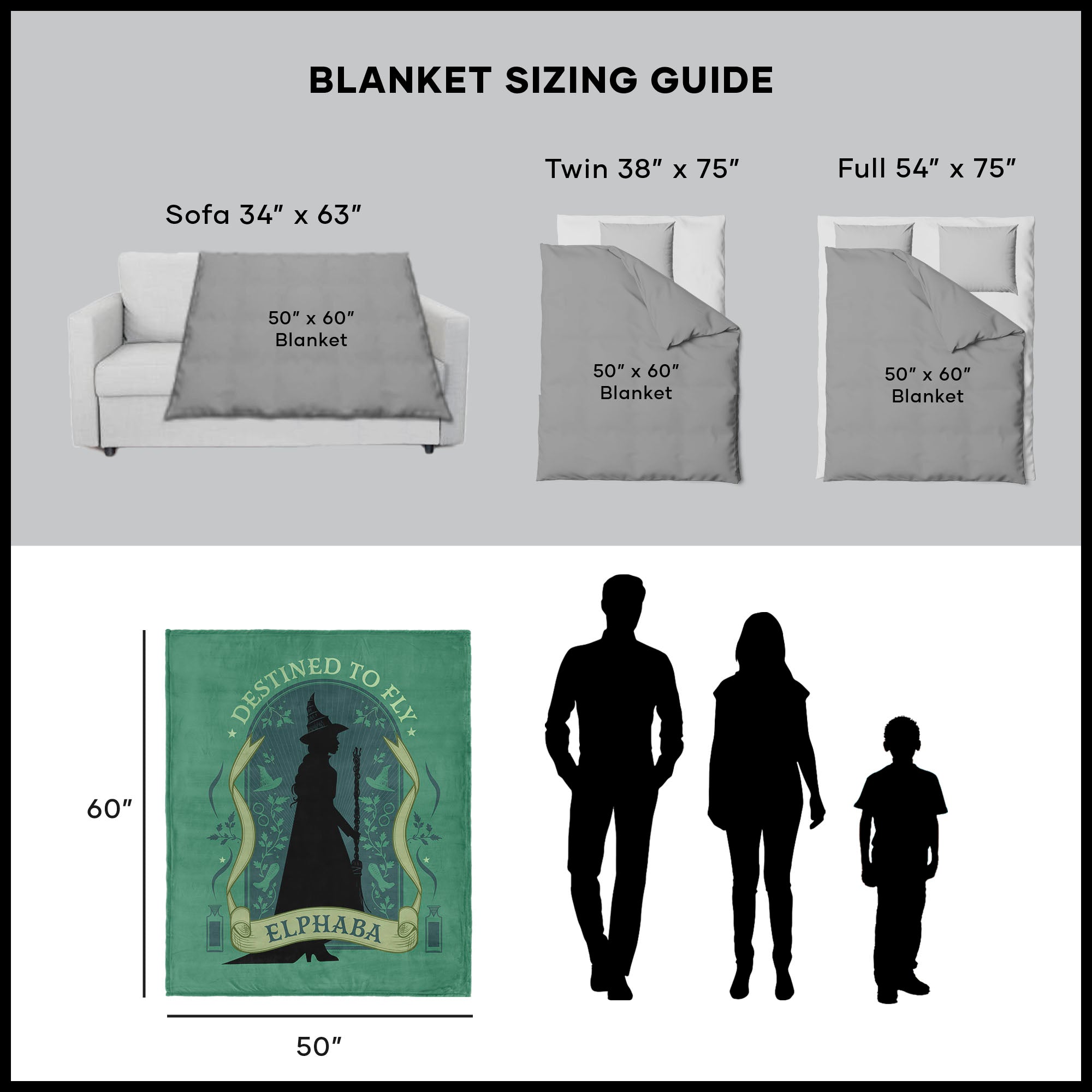 Soar to new heights with the Universal Wicked “Destined to Fly” Silk Touch Sherpa Throw Blanket, featuring a striking silhouette of Elphaba in her iconic hat and cloak, framed by magical flying shoes, leafy vines, potion bottles, and a bold banner that proudly declares her name. Inspired by the empowering journey of Wicked’s most famous witch, this blanket brings a sense of courage and independence to any space, reminding you to embrace your own destiny with every cozy moment. Drape it over your couch, bed, or favorite reading nook to add a touch of emerald enchantment and let your imagination take flight while you stay wrapped in silky-soft comfort.