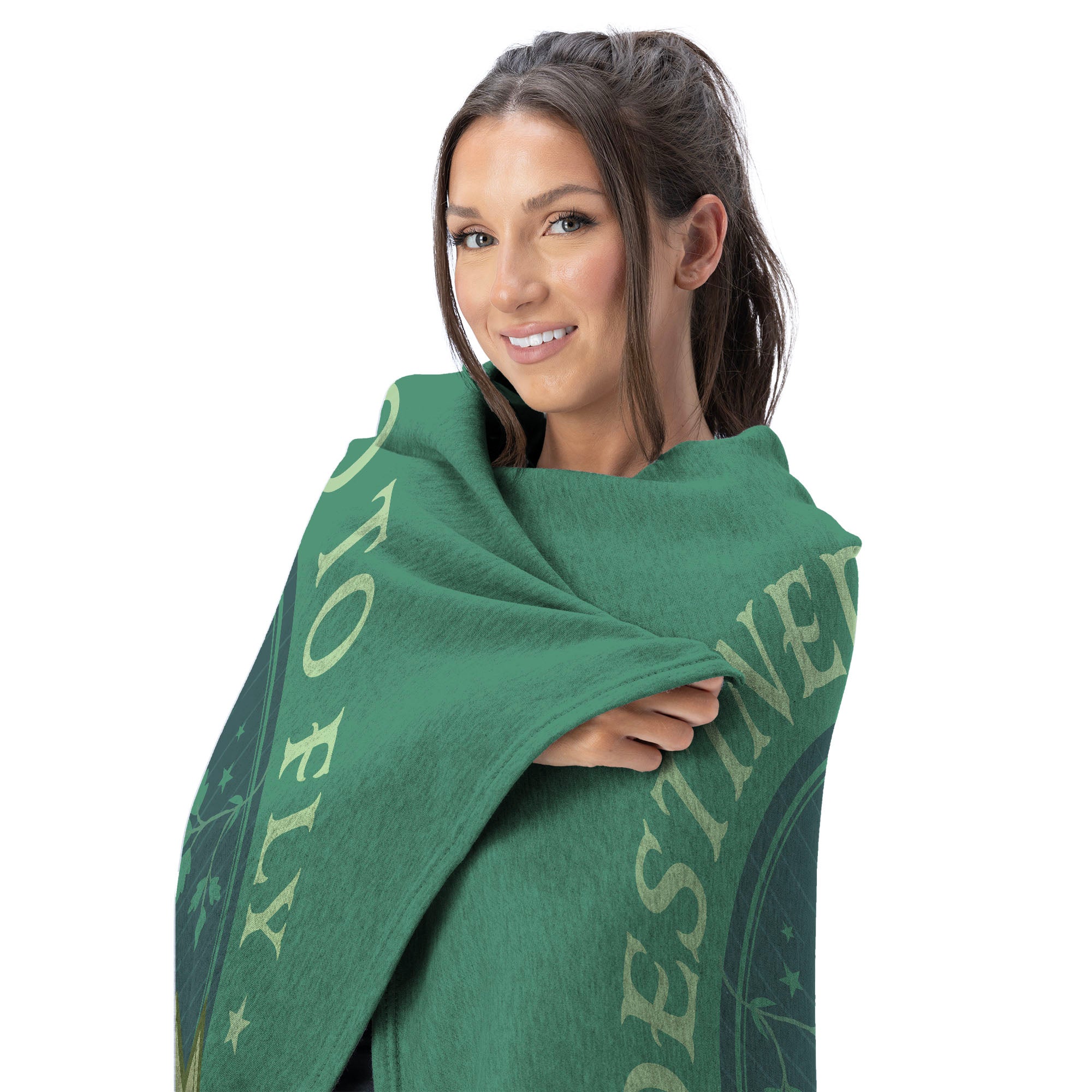Soar to new heights with the Universal Wicked “Destined to Fly” Silk Touch Throw Blanket, featuring a striking silhouette of Elphaba in her iconic hat and cloak, framed by magical flying shoes, leafy vines, potion bottles, and a bold banner that proudly declares her name. Inspired by the empowering journey of Wicked’s most famous witch, this blanket brings a sense of courage and independence to any space, reminding you to embrace your own destiny with every cozy moment. Drape it over your couch, bed, or favorite reading nook to add a touch of emerald enchantment and let your imagination take flight while you stay wrapped in silky-soft comfort.